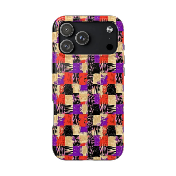 A blaze of color spreads across this design, where fiery reds clash with deep purples and muted beiges. The brushstrokes are wild and spontaneous, like an artist’s canvas mid-creation, while the layered texture hints at stories untold. The patchwork composition feels alive, embodying the raw energy of passion and creativity. Ideal for adding energy and creativity to any look, this design captures the spirit of bold self-expression.