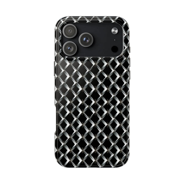 Elegant, refined, and captivating, ‘Diamond Allure’ draws you into a world of sophistication with its interwoven diamond patterns. Gleaming silver accents on a deep black backdrop create a striking visual contrast, adding a touch of timeless glamour. The subtle shimmer and intricate design evoke an air of luxury and exclusivity. Perfect for those who appreciate classic beauty with a modern twist, this design effortlessly enhances your style with its sleek and polished allure.