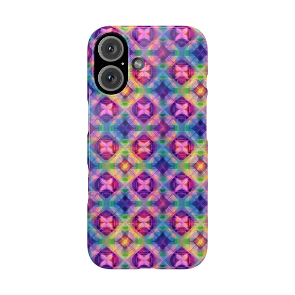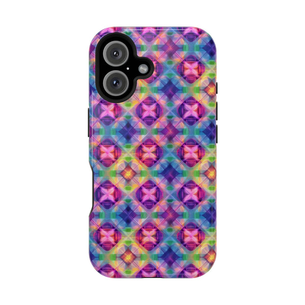 A world of light and color unfolds within this design, where prismatic shapes shimmer in shades of pink and purple, intertwined with green and blue. Each layer feels like a window into a kaleidoscope, radiating a mesmerizing glow that captures the imagination. The soft transitions and rhythmic symmetry evoke a sense of wonder and balance.Perfect for those who appreciate bold color palettes and artistic depth, this pattern offers a dazzling yet harmonious aesthetic.