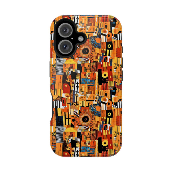 Sunset Geometry blends warm, sun-drenched tones with dynamic geometric shapes, creating a rich and layered visual experience. The vibrant hues and structured patterns draw inspiration from ancient motifs, reinterpreted with a modern and abstract touch. This design offers a bold statement for those who embrace a fusion of cultural heritage and contemporary style.