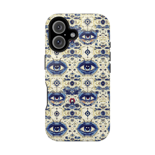 A surreal and captivating design, Visionary Dreams features mesmerizing eye motifs interwoven with intricate patterns that evoke an otherworldly atmosphere. The deep blue shades of the eyes contrast against the delicate cream background, creating a sense of depth and mystique. Floral elements and abstract shapes blend symbolism and artistic whimsy in a dreamlike tapestry, perfect for avant-garde aesthetics.