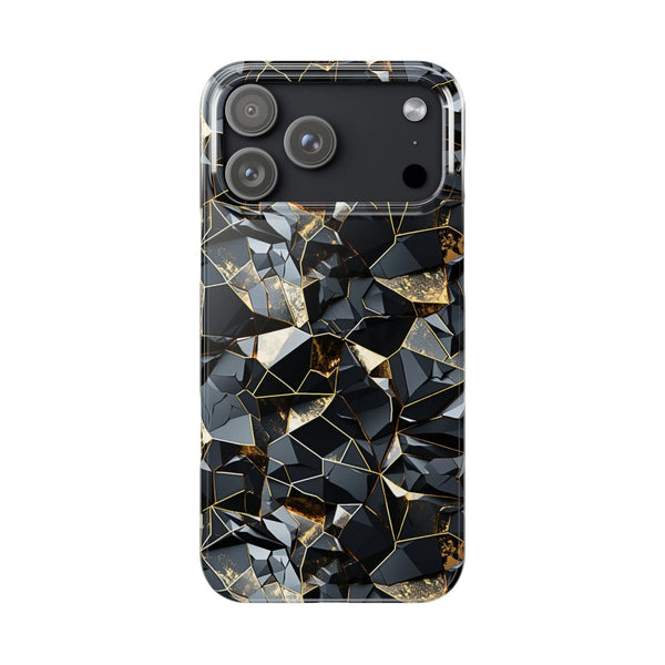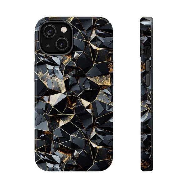 Eclipse Shatter combines the allure of dark geometric shards with hints of shimmering gold, creating a striking contrast. The fragmented design gives off a sense of strength and mystery, with its sharp edges reflecting elegance and boldness. Perfect for those looking to make an impact with a sleek, modern touch, this design evokes a sense of depth and texture, making it a standout addition to any style.