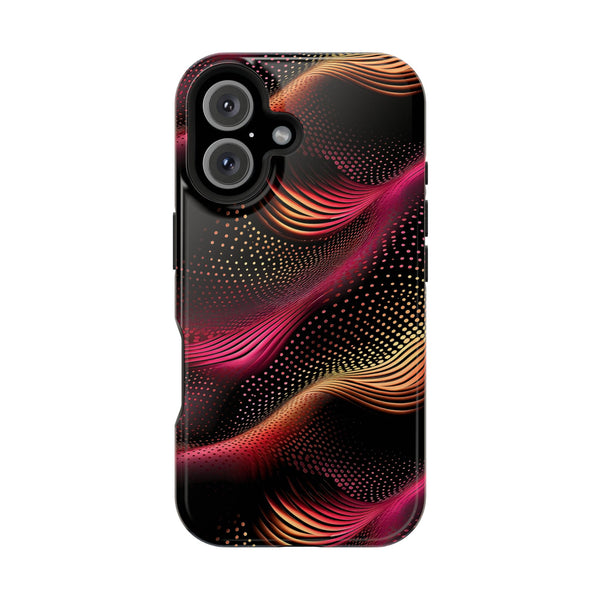 Bold, hypnotic, and irresistibly electric — Heat Index channels the pulse of a desert rave into a kinetic visual flow. Saturated gradients of molten orange, magenta, and scarlet slide across a deep noir backdrop like waves of heat through tinted glass. The layered dots and sleek curves aren’t just decorative — they radiate rhythm. This is movement frozen mid-surge, designed for those who live in intensity and burn bright after dusk. Whether you’re dancing under strobes or just walking like you own the room, this pattern moves with you. Turn up the color. Set the tone on fire.