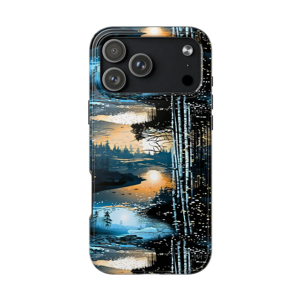 In Silent Season, the quiet, serene beauty of nature unfolds. A muted dance of crisp whites, soft blues, and deep blacks creates a landscape untouched by time. The delicate rustling of snowflakes fills the air as the silhouette of slender trees contrasts with the glowing warmth of a distant sun, casting long shadows over the reflective waters. Every detail whispers of tranquility — a moment frozen in time, where the world slows, and the only sound is the breath of winter. This design speaks to those who find beauty in stillness and seek the calm after the storm. Where silence speaks louder than words.
