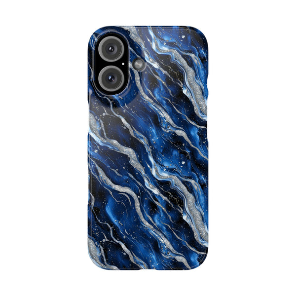 Elegant, mesmerizing, and timeless, Celestial Stream captures the fluid beauty of starlit skies and flowing marble. Swirling currents of deep navy and silver glitter cascade across the surface, evoking the grandeur of the night sky meeting cosmic rivers. The shimmering textures dance with light, creating a sophisticated and dynamic visual effect, perfect for those drawn to bold and luxurious designs.