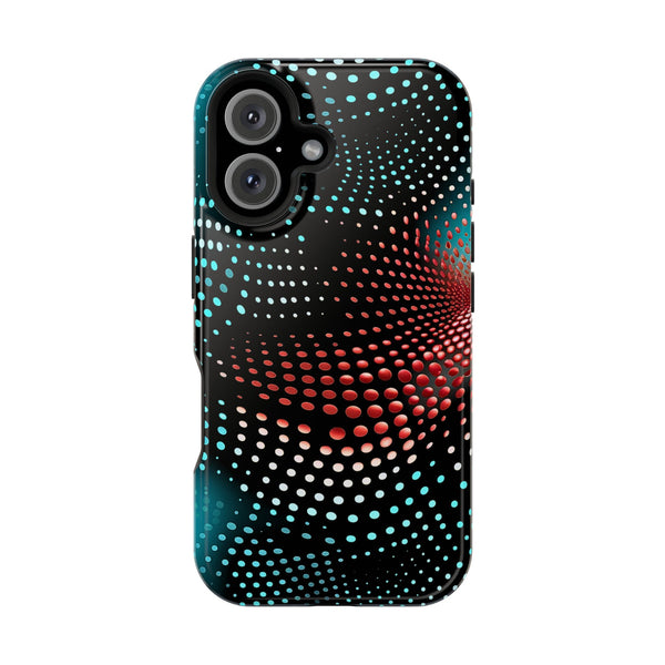 Playful, kinetic, and rhythm-charged — Pulse Grid is like stepping inside a beat that never ends. Spheres of white, teal, and coral scatter across a black void, forming a pulsating matrix that shifts like a visual equalizer. Every curve feels like bass you can see, treble you can touch. This design was made for movers — the dance-floor dreamers, the ones who live in loops and love in layers. It’s retro-futurism with a tempo, made to move with you. You don’t wear this — you ride the rhythm.