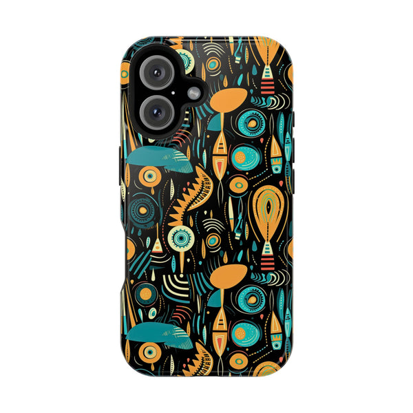 Cosmic Flow channels the energy of abstract forms and vibrant colour dynamics, combining cultural elements with futuristic flair. The swirling patterns in teal, orange, and cream are reminiscent of cosmic waves, orbiting shapes, and celestial objects, creating an intriguing interplay of movement and stillness. The design's scattered lines and circular motifs evoke both organic and mechanical themes, making it perfect for those who enjoy unique, imaginative visuals. Ideal for adding cosmic energy.