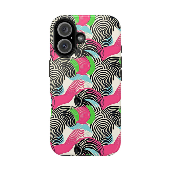 A vibrant current of colors flows through this design, where deep navy stripes ripple like waves against bursts of pink, green, and blue. The smooth, sweeping curves create a sense of motion and energy, as if capturing the rhythm of a lively, creative spirit. Each line dances with purpose, celebrating individuality and harmony. Perfect for those who love contemporary patterns and bold color combinations, this design brings a lively and stylish edge to any look.