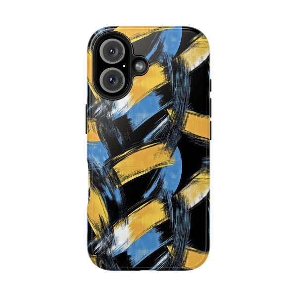 Sweeping golden arcs and deep blue strokes cut through a shadowy black canvas, evoking the energy of an artist’s brush in motion. Each textured layer tells a story of spontaneity and passion, blending the warmth of gold with the calm of blue. The raw, expressive lines feel alive, as though capturing a fleeting moment of creativity. For those who find inspiration in bold contrasts and artistic expression, this design offers a powerful and dynamic aesthetic that leaves a lasting impression.