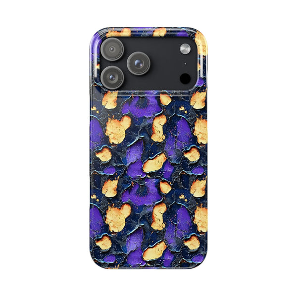 Vibrant, textured, and energetic, Molten Impact contrasts deep purples with bursts of glowing gold. The rugged, cracked surface and bold colour choices give this design an intense, fiery feel, perfect for those who love to embrace a striking look. Whether you're going for a daring style or looking to stand out, Molten Impact radiates confidence and power with every glance.