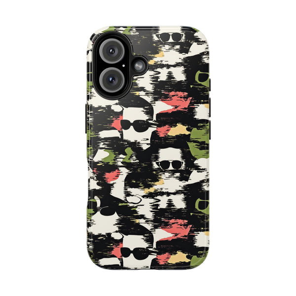 Phantom Shades blends mystery and style with a unique fusion of dark silhouettes and abstract strokes. The subtle outlines of sunglasses create a striking, edgy effect, while the red, green, and beige tones add a camouflaged depth. This design is perfect for those who want to make a bold, fashionable statement while maintaining an air of intrigue. Ideal for tech accessories or fashion items, Phantom Shades turns any look into an enigmatic style statement.